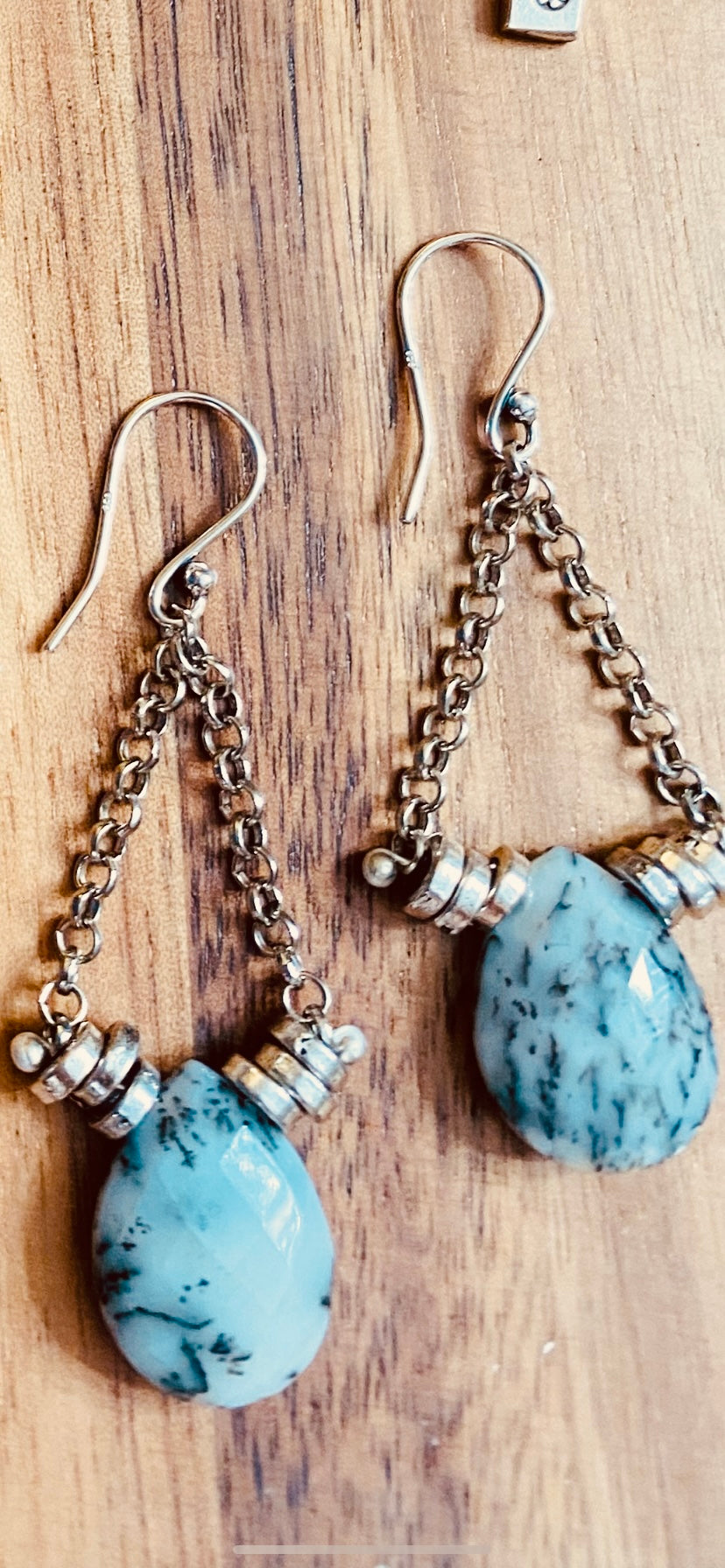 Check out these plump dendrite opals in a playful swing format with sterling silver French wires. A beautiful classic to add to your wardrobe! Each matched pair of opals is unique. Drop is 2” from bottom of ear wire.