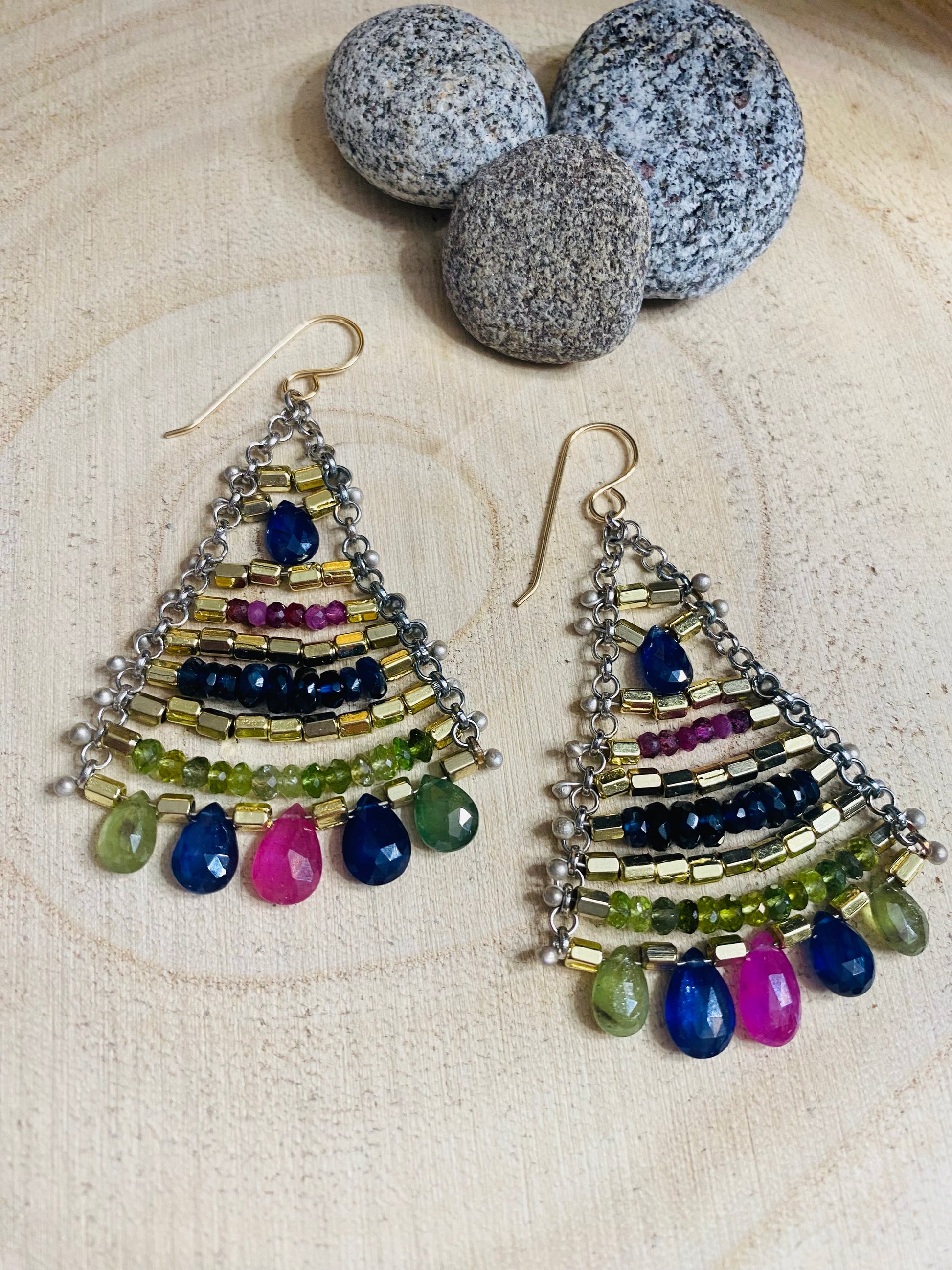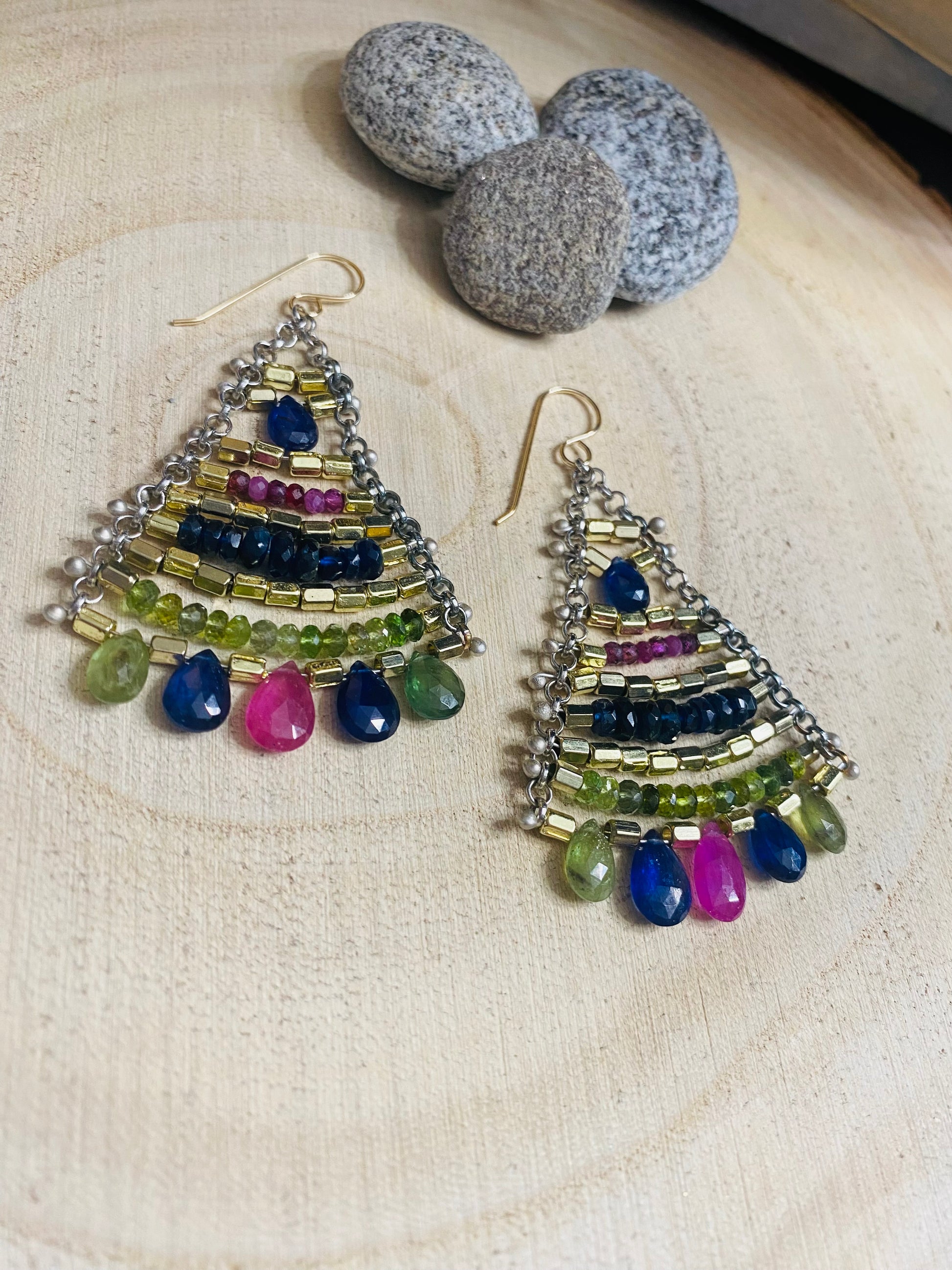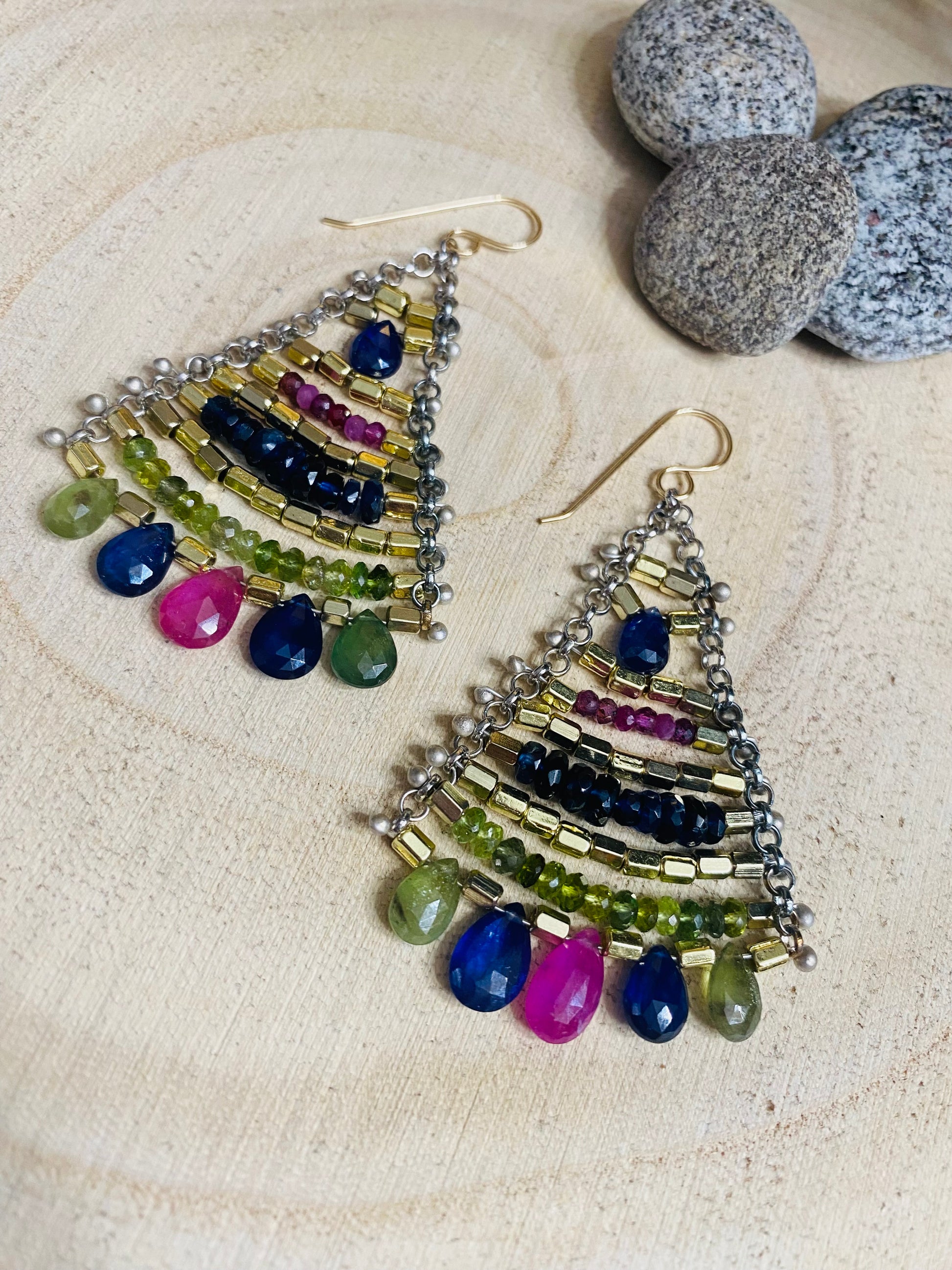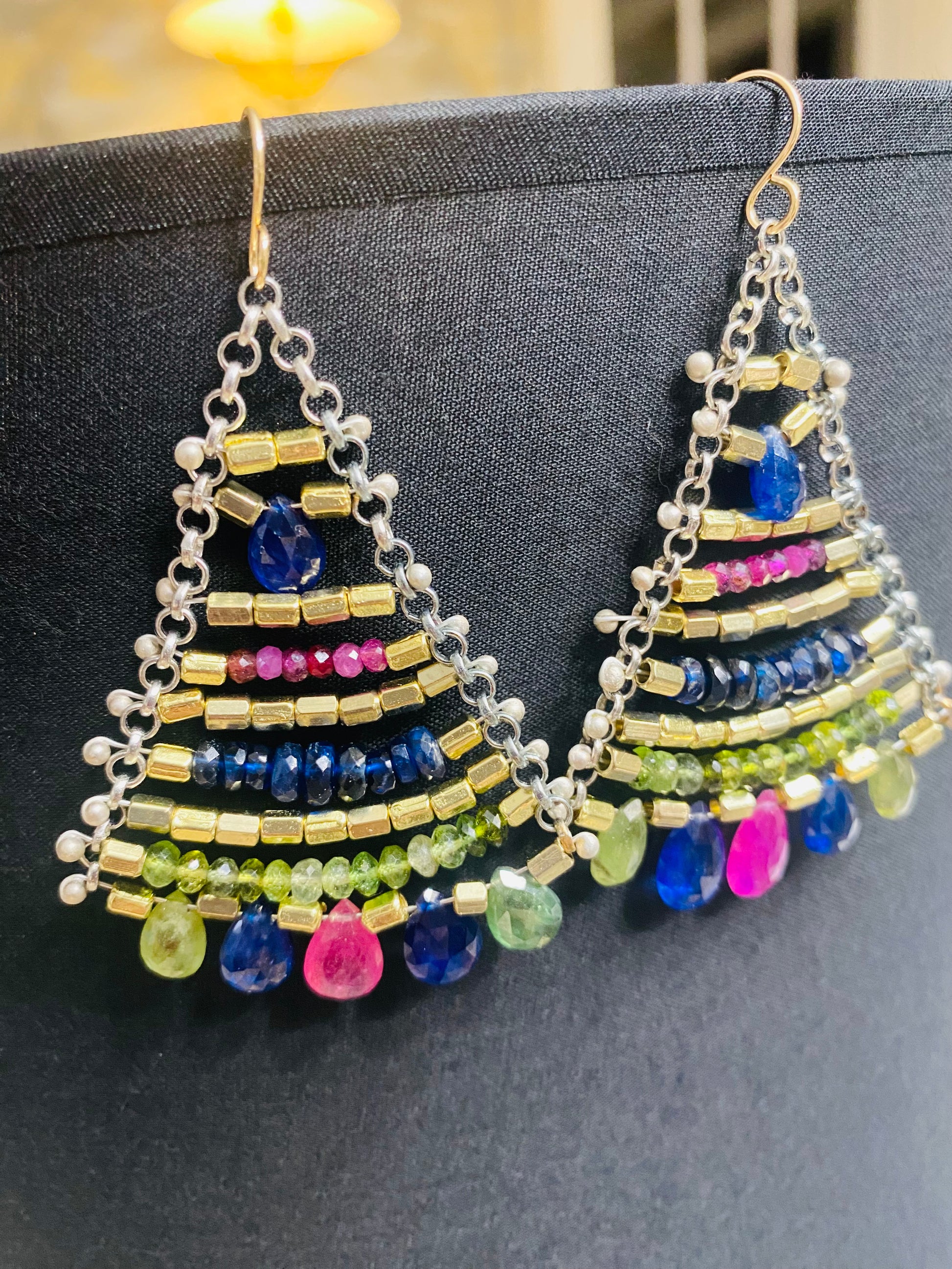 These are SHOWSTOPPERS!!!! Layer upon layer of gorgeous, juicy, color saturated sapphires paired with premium quality kyanite and green zircon rondelles. One of a kind and worth every cent. I know in my heart the type of woman who will make these her own. She effortlessly makes an entrance anywhere she goes!