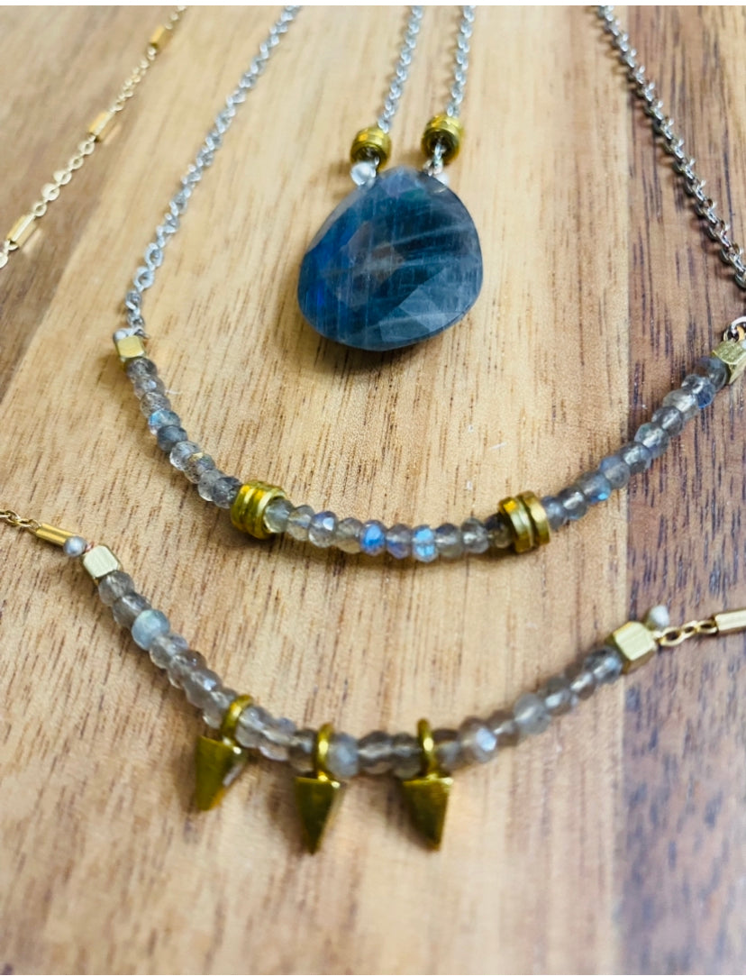 Labradorite Arrow Layering Necklace - Multiple Stone Options