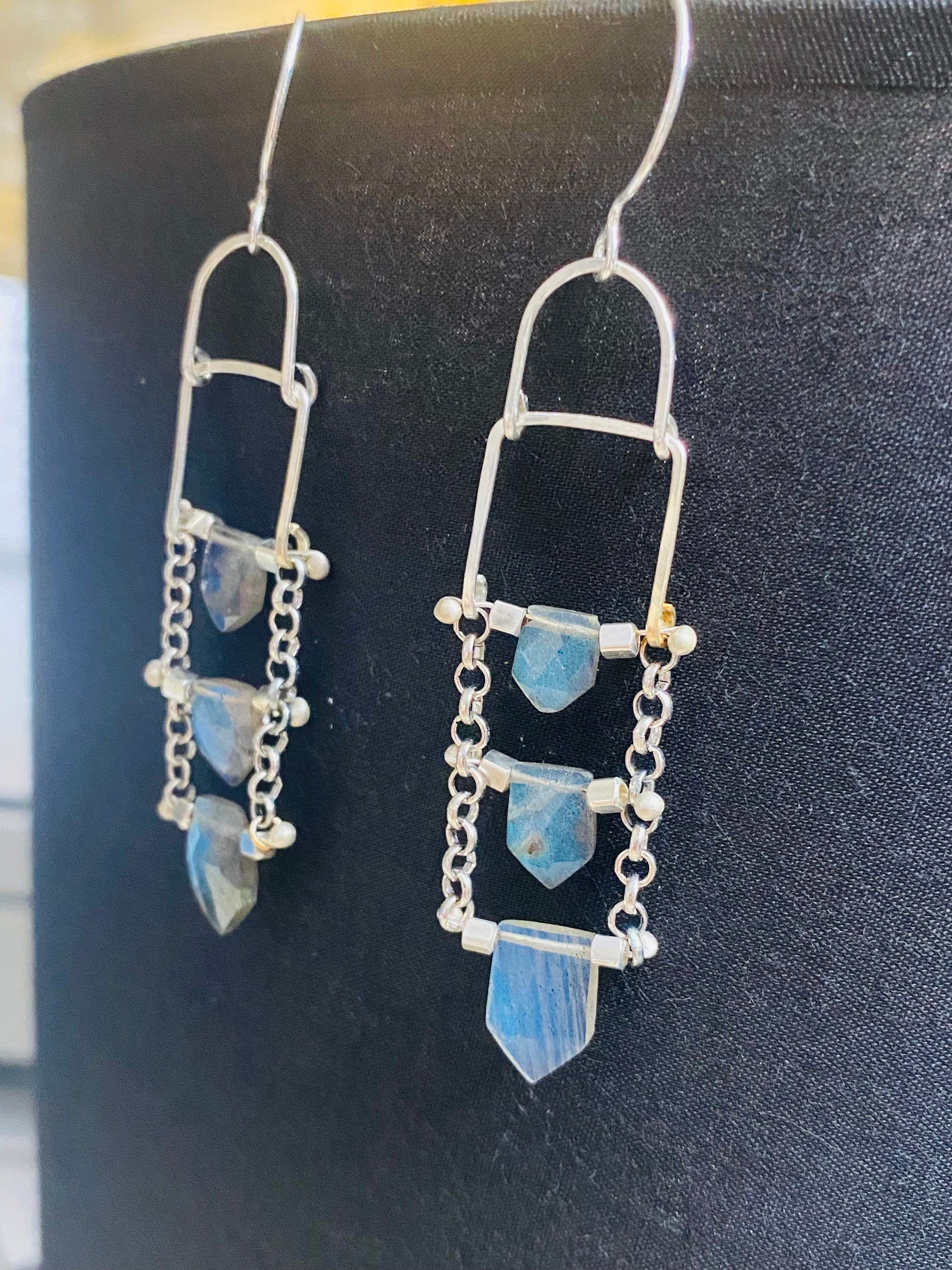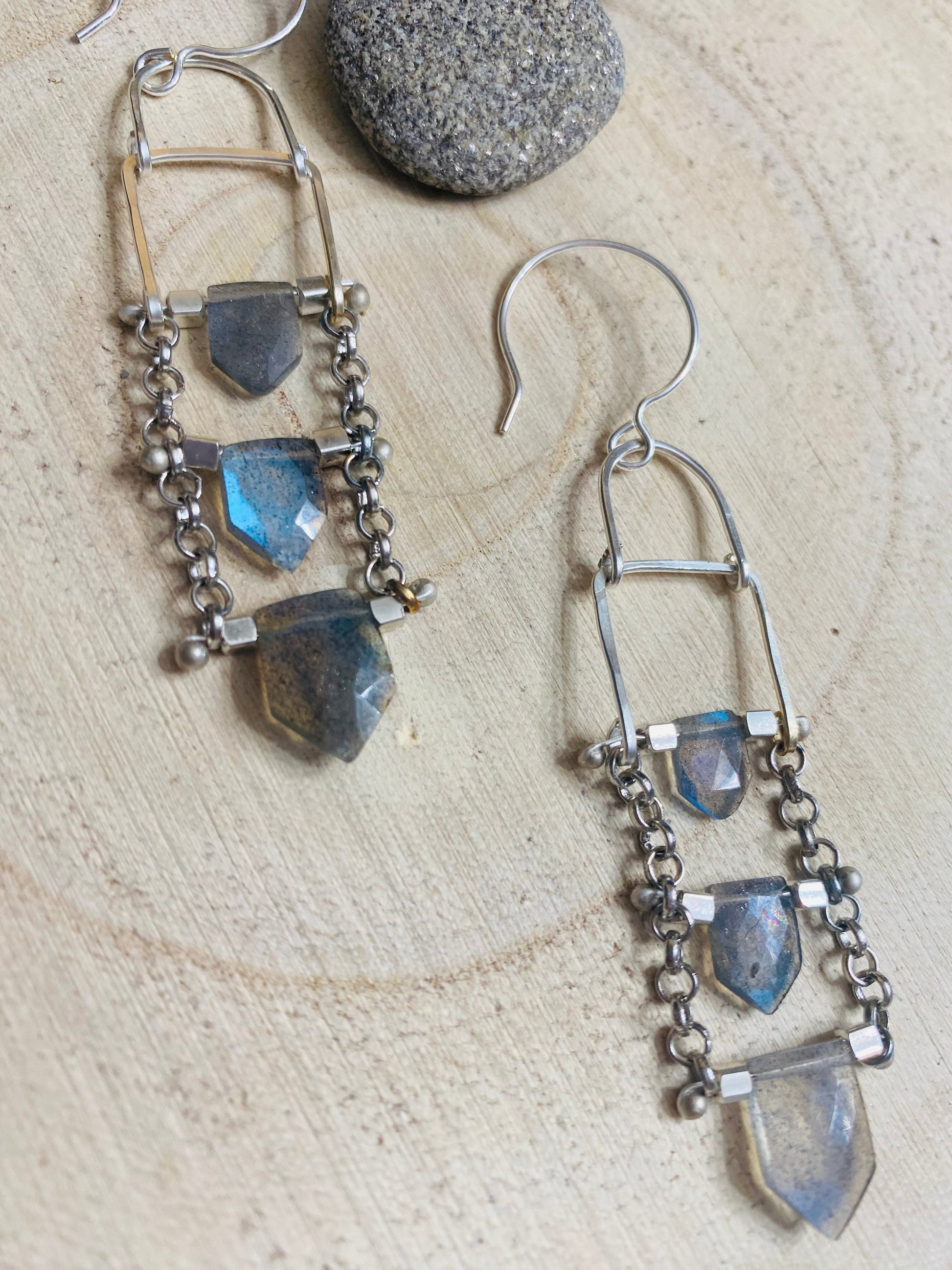 Labradorite Shield Earrings - Multple Stone Options Available.