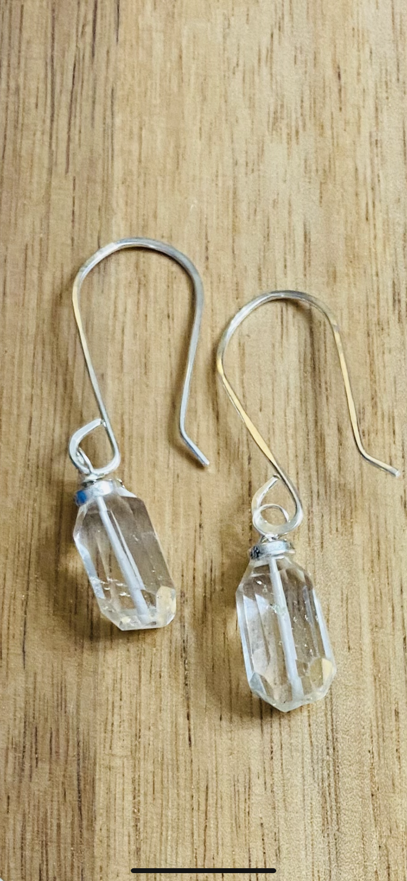Beautifully faceted rock crystal faceted nugget earrings on hand forged sterling silver ear wires. Great for every day! Drop is approx 3/4” from bottom of wire. Each nugget pair is unique.