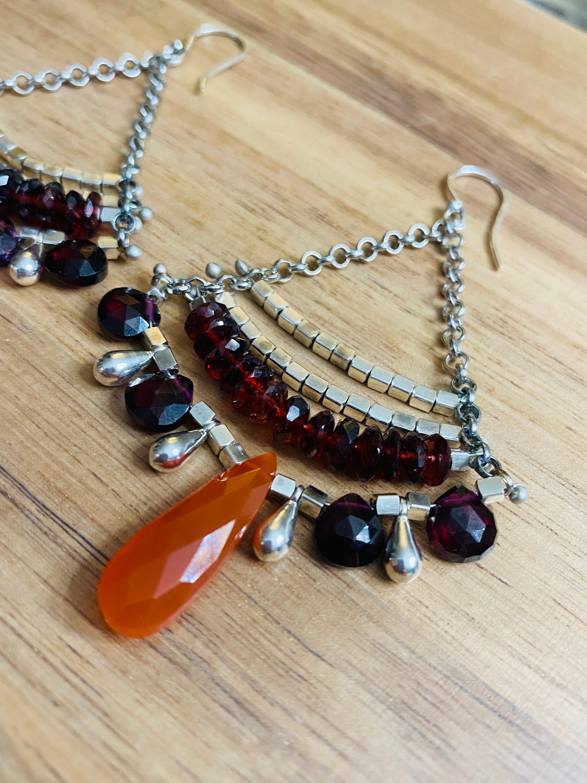 Vivid Carnelian and Garnet Earrings - JUICY COMBINATION!